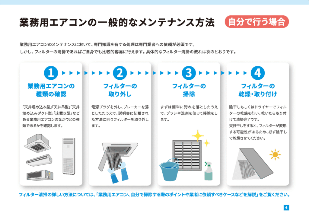 製品を長く安心して使うためには、こまめなセルフメンテナンスが肝心です。